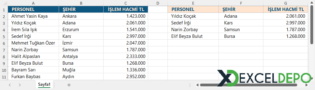 Bir sütundaki değerlerden istenidiğiniz satırlarda olanları kolayca başka bir alana listelemenizi öğretir.| YARARLI KISAYOLLAR | |